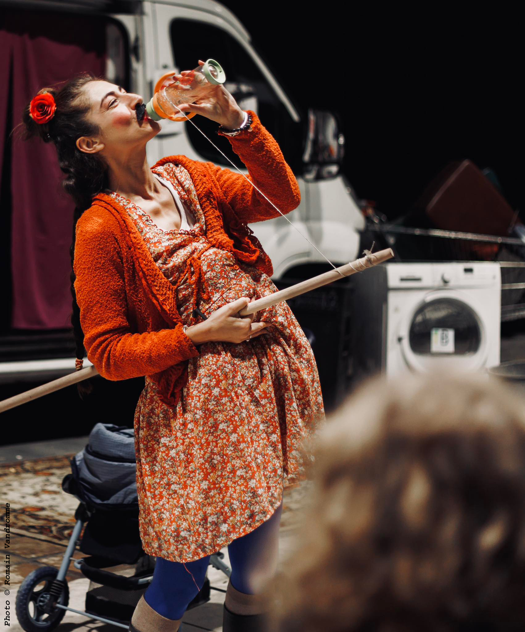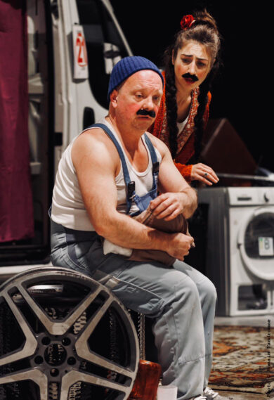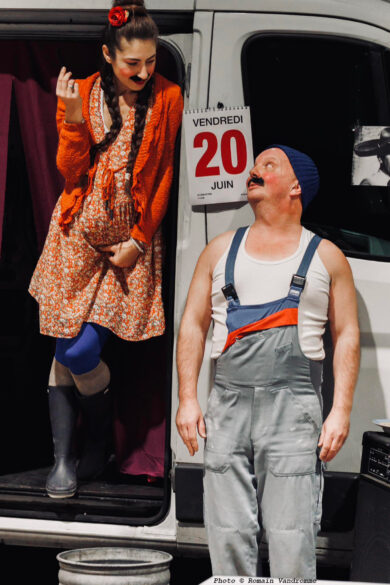 Dans un décors fait de bric et de broc d’où se dégage une certaine poésie, ce couple fusionnel brise les tabous au travers de scènes à l’apparence légères, mais chargées de sens.